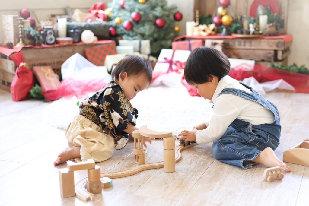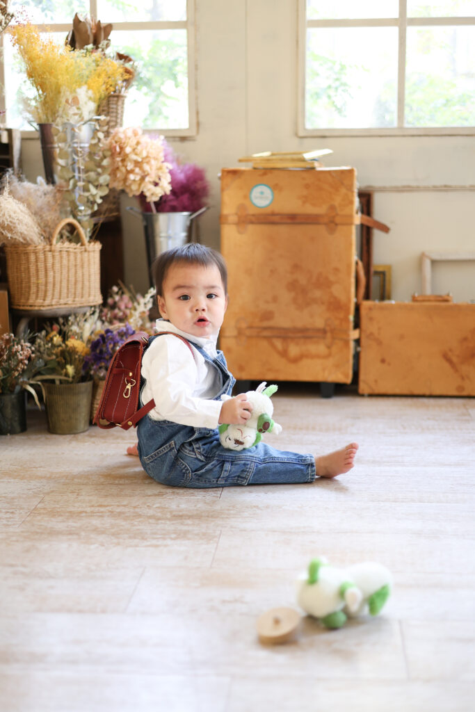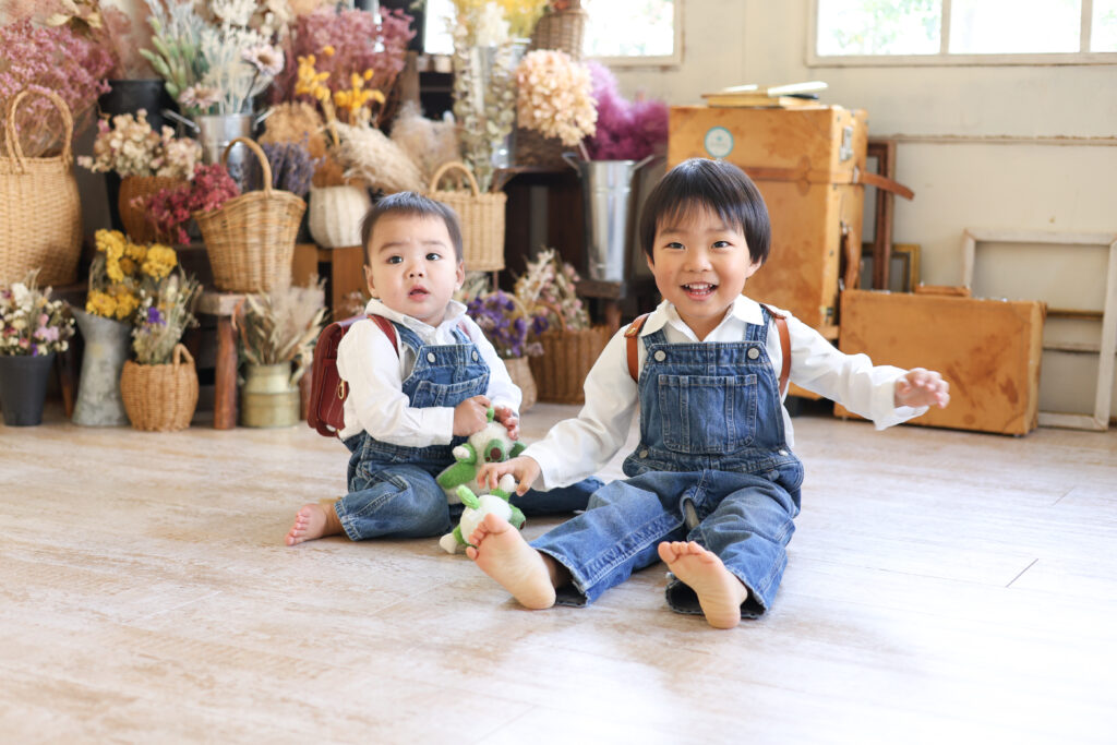 お兄ちゃんもおそろいの服装。小さい頃から持ってきてくれるちいさなランドセルはふたり分。