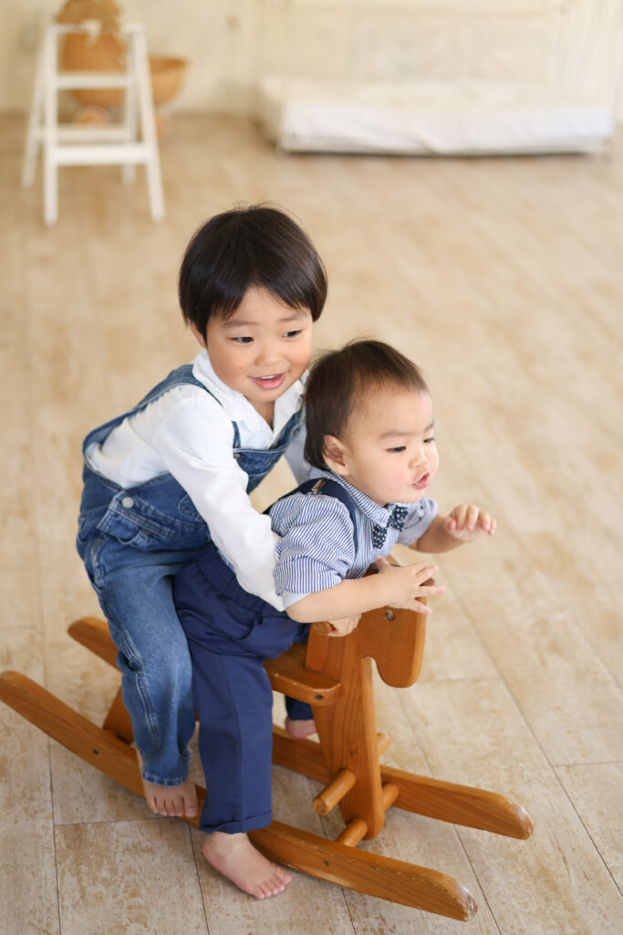お兄ちゃんは楽しくて、わーっとやっています。リンクしたふたりの動きが可愛い一枚。