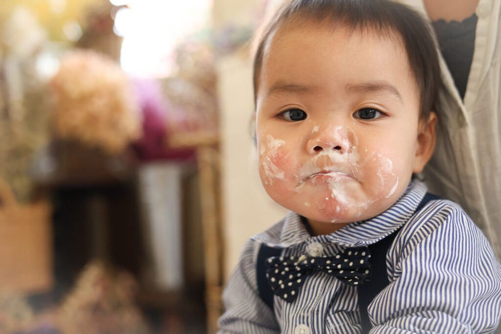 ケーキおいしかったんだね~。お顔にもたっぷりクリームをつけて満足気。