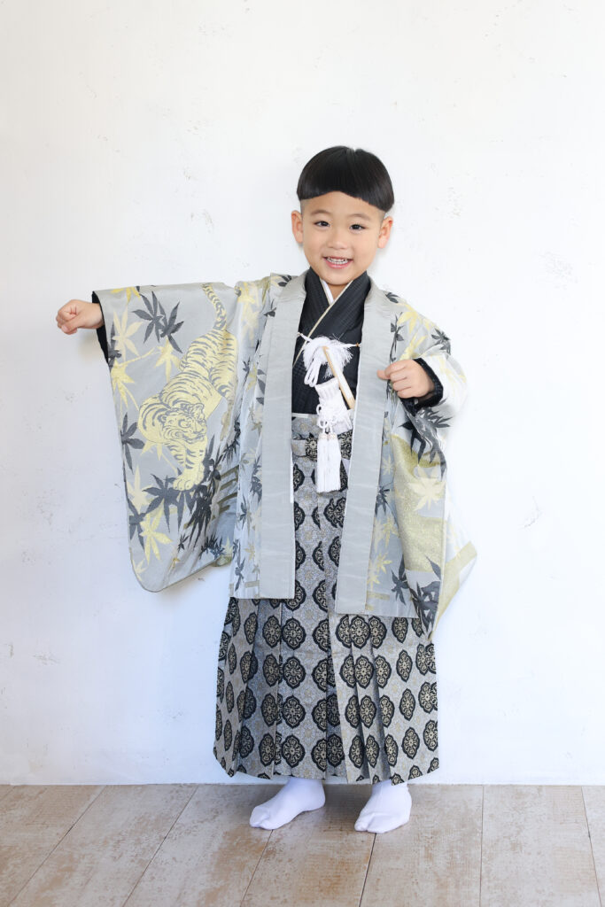 柄が気に入って自分で選んだ着物とのこと。ポーズがちょうどトラを見せるポーズになっていて最高!