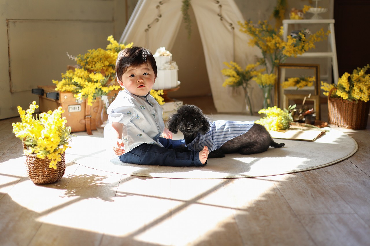 <1才バースデー>マメちゃんまた来てね<入学フォト>