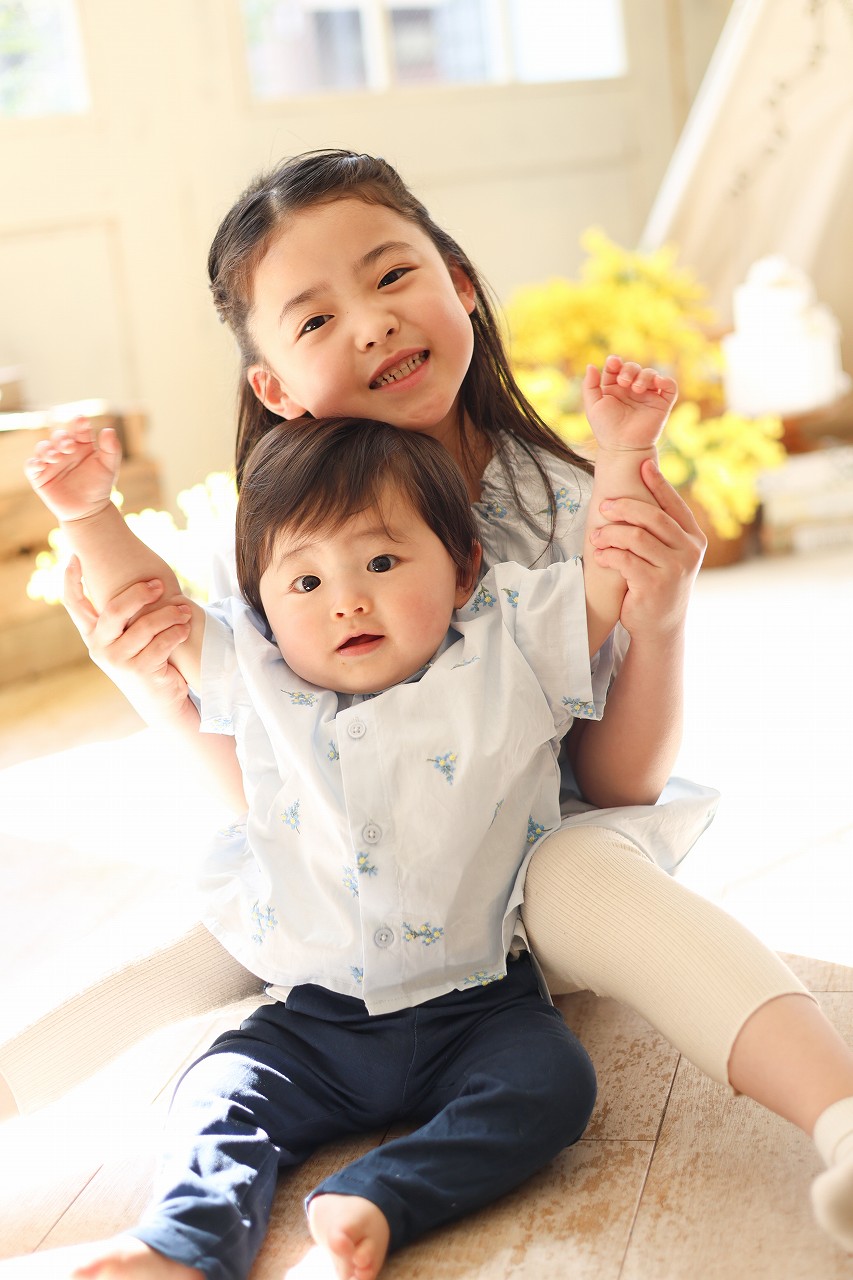 姉弟写真を撮りました。洋服もお揃いだし。