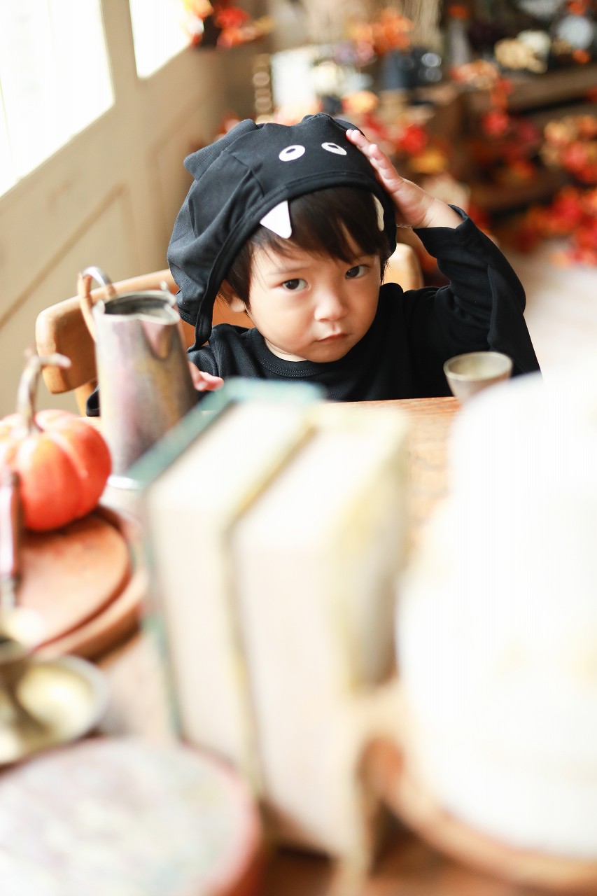 ハロウィン衣装は、帽子がポイントですが、頭周りのディフェンスが強固。