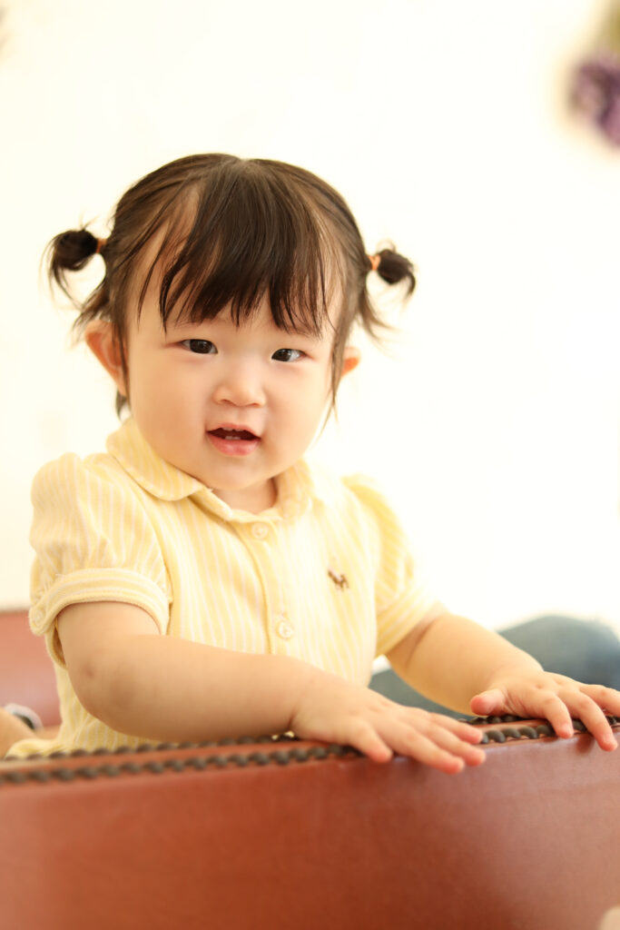 スタジオに慣れてもらう作戦。パパとママが近くにいると安心。