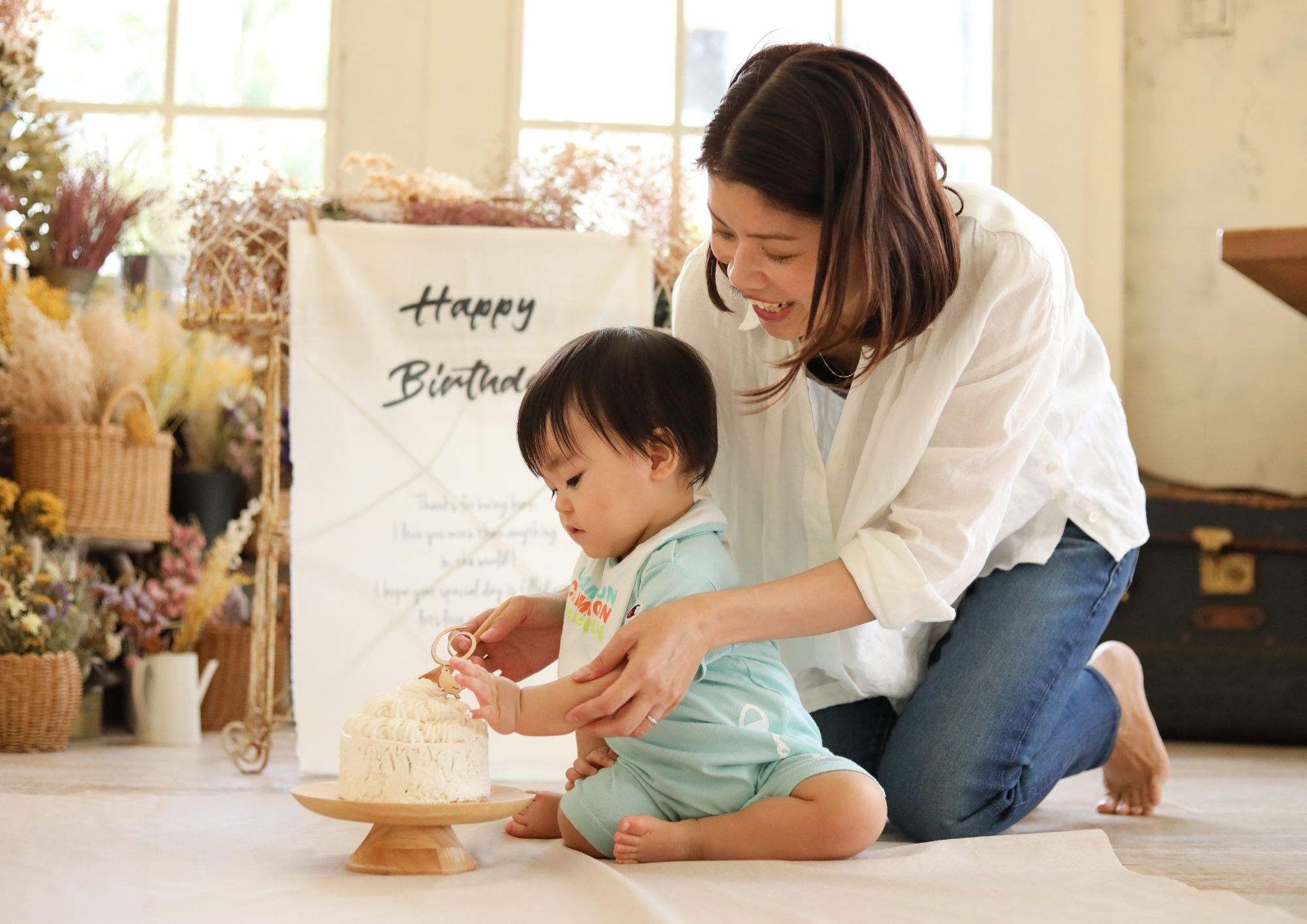 ここはお子様をセンターじゃなくて、文字の隣にしました。
