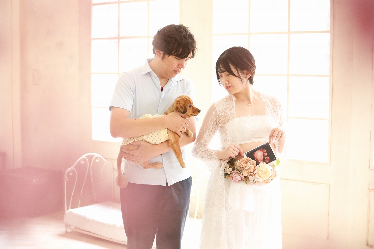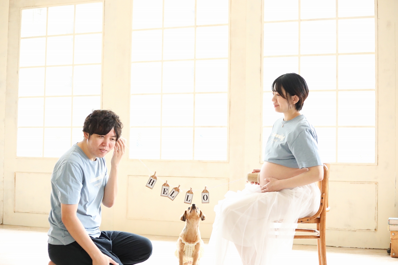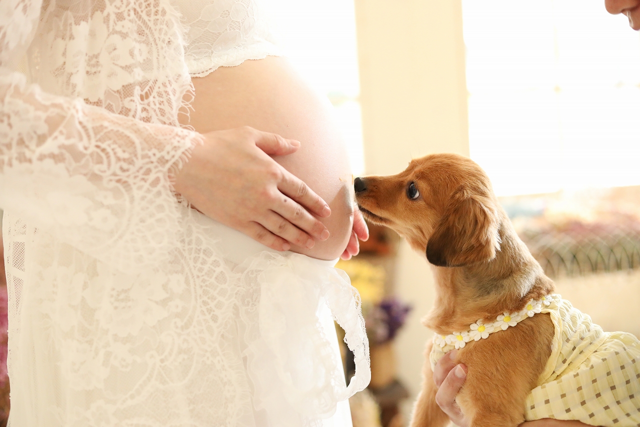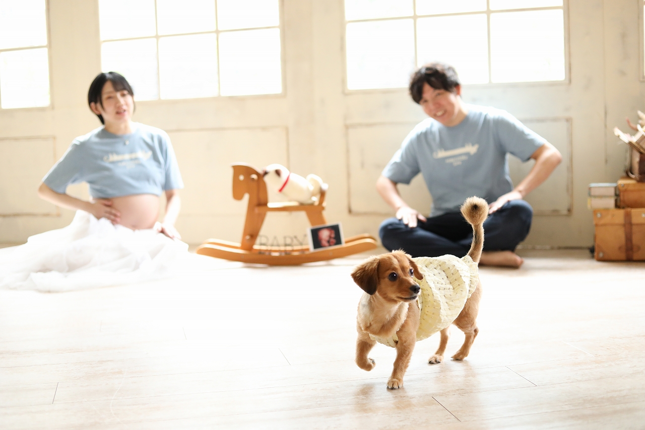 <マタニティフォト>多彩なワンちゃんの表情