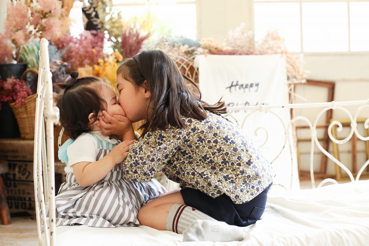 <一才バースデー>ちゅ~~♪<姉妹の愛情表現>