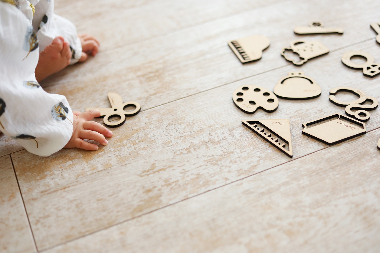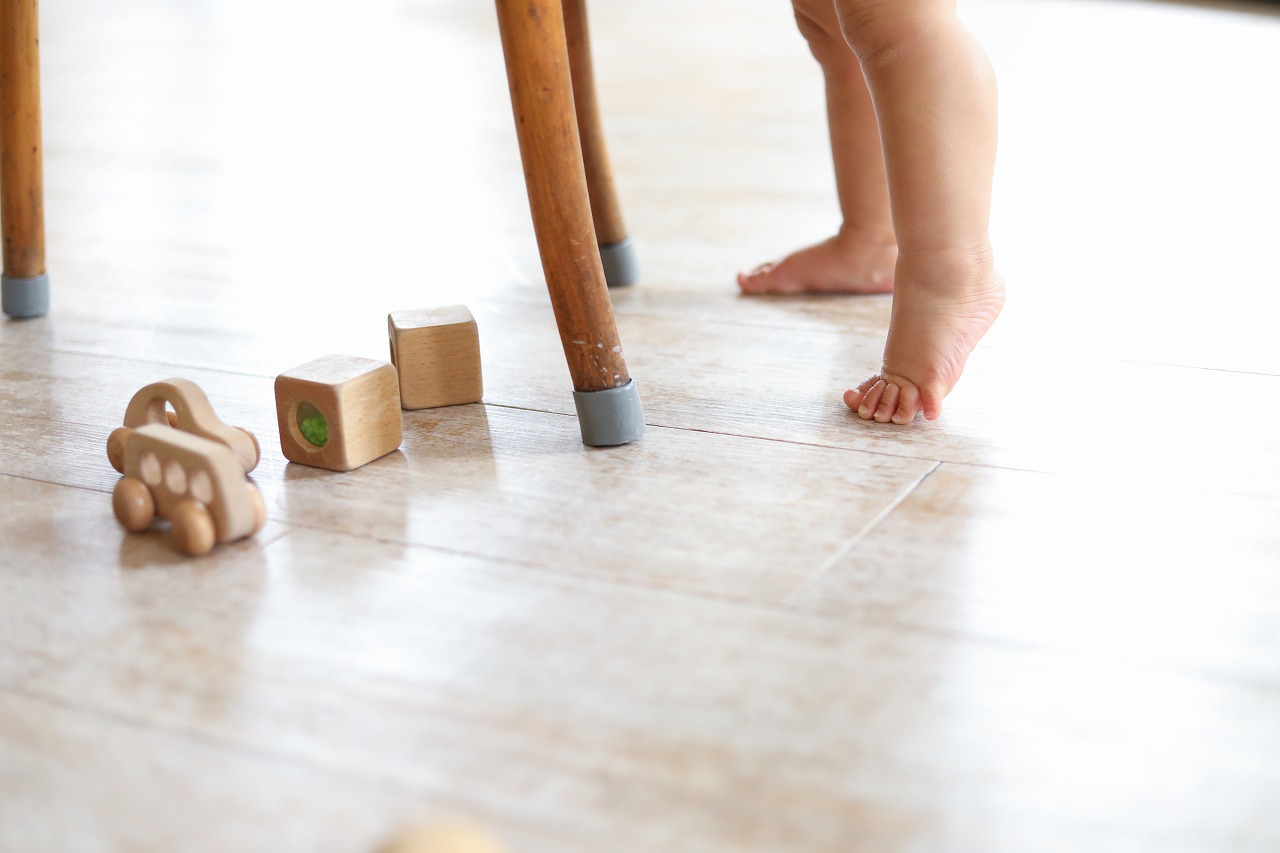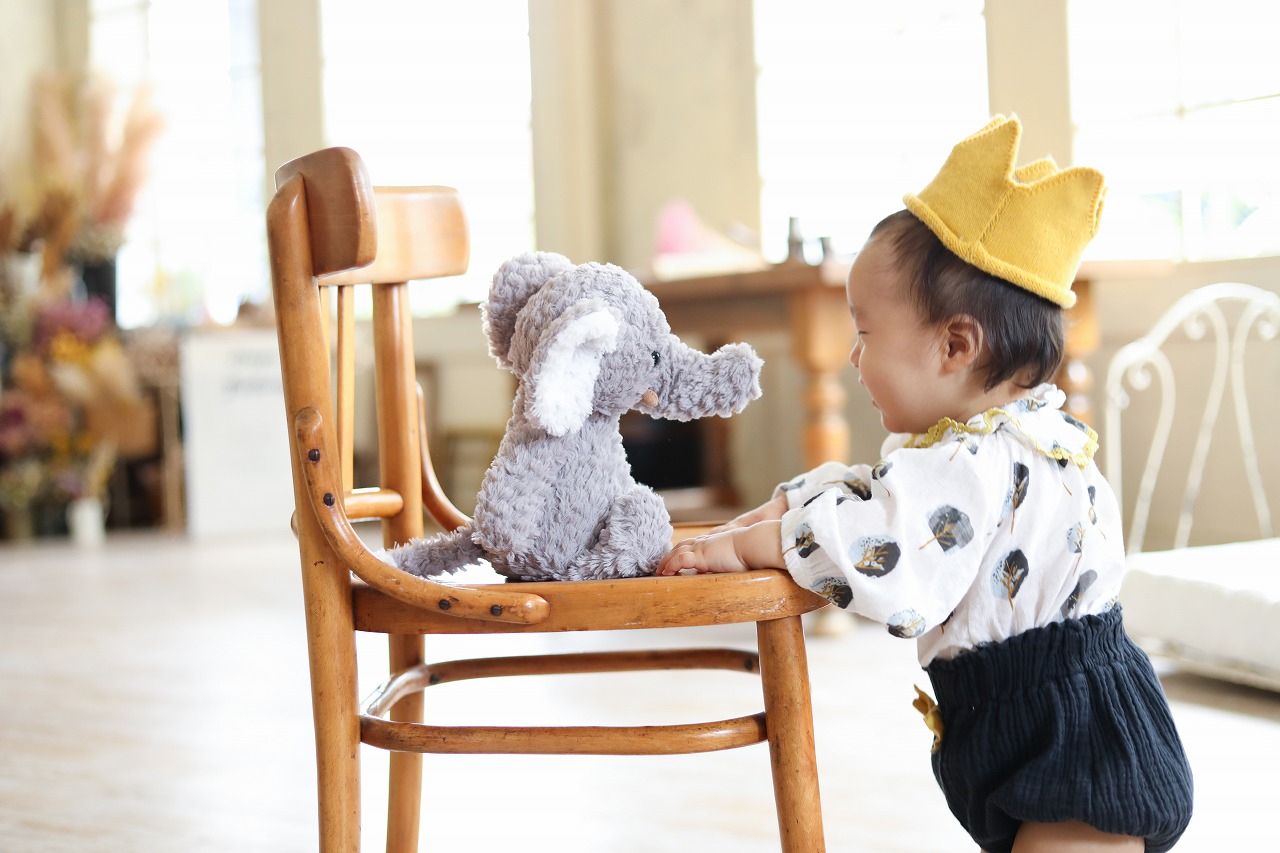 つかまり立ちも出来るとの事で、お気に入りのぬいぐるみを椅子の上に、