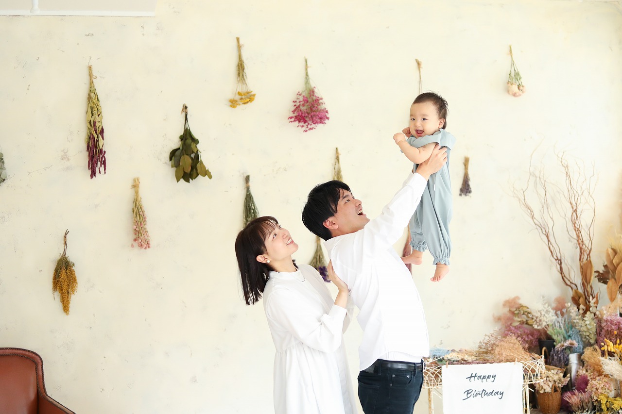 そして、ドライフラワーのセットを背景に、高い高いしてもらっているシーン。