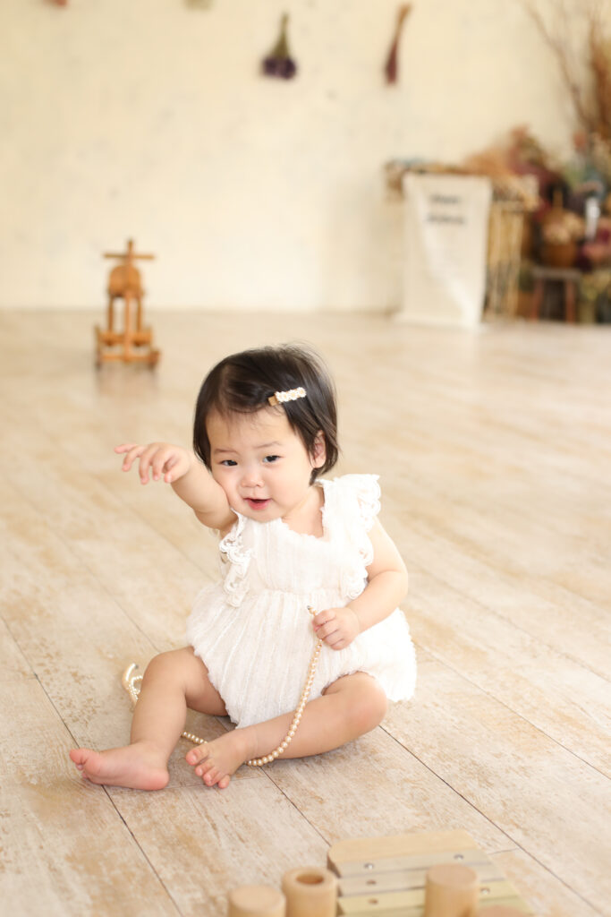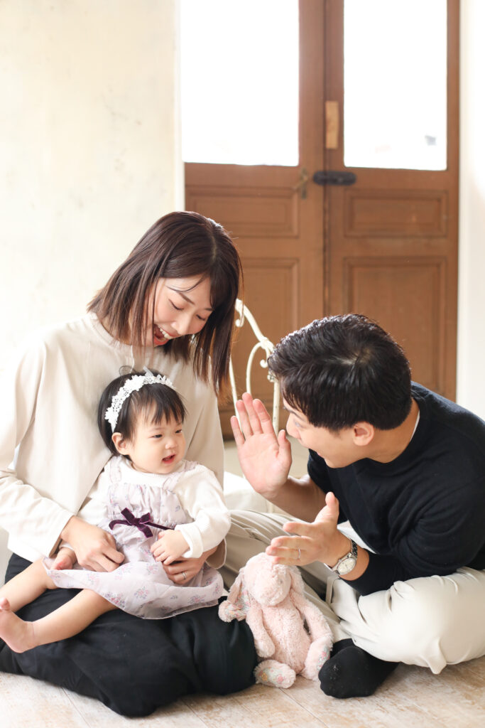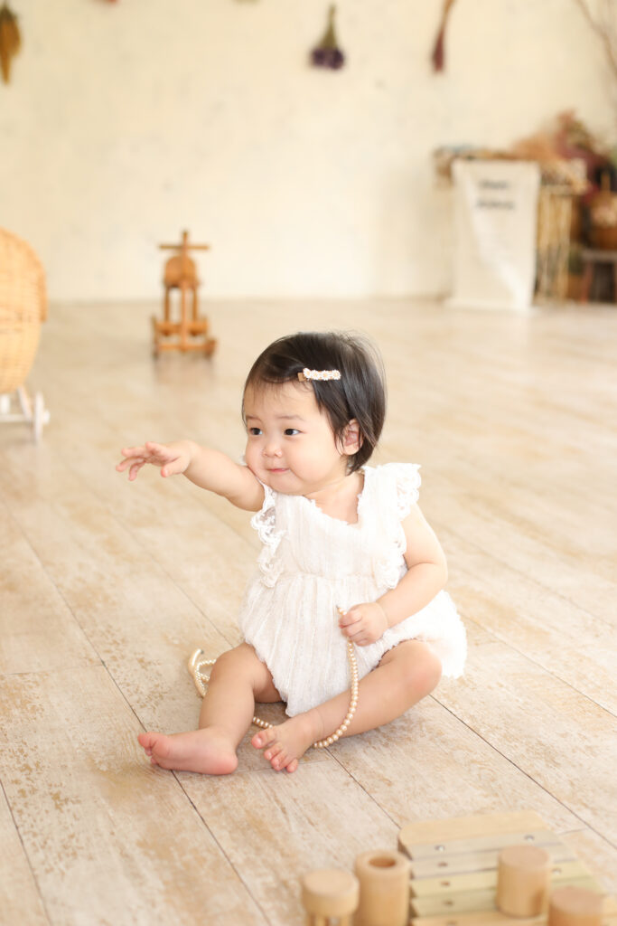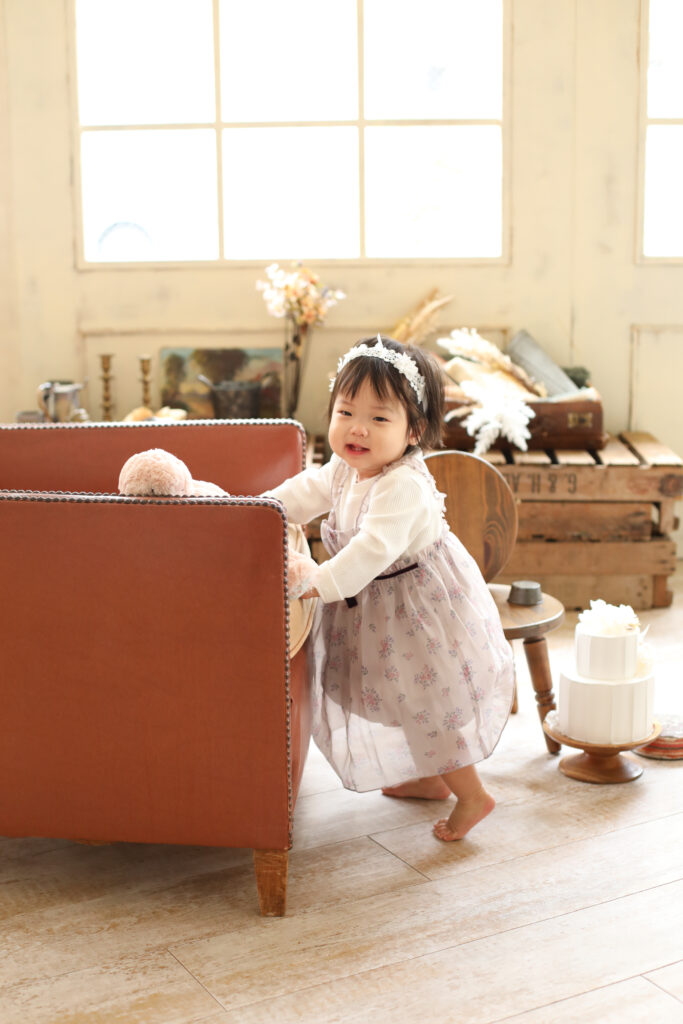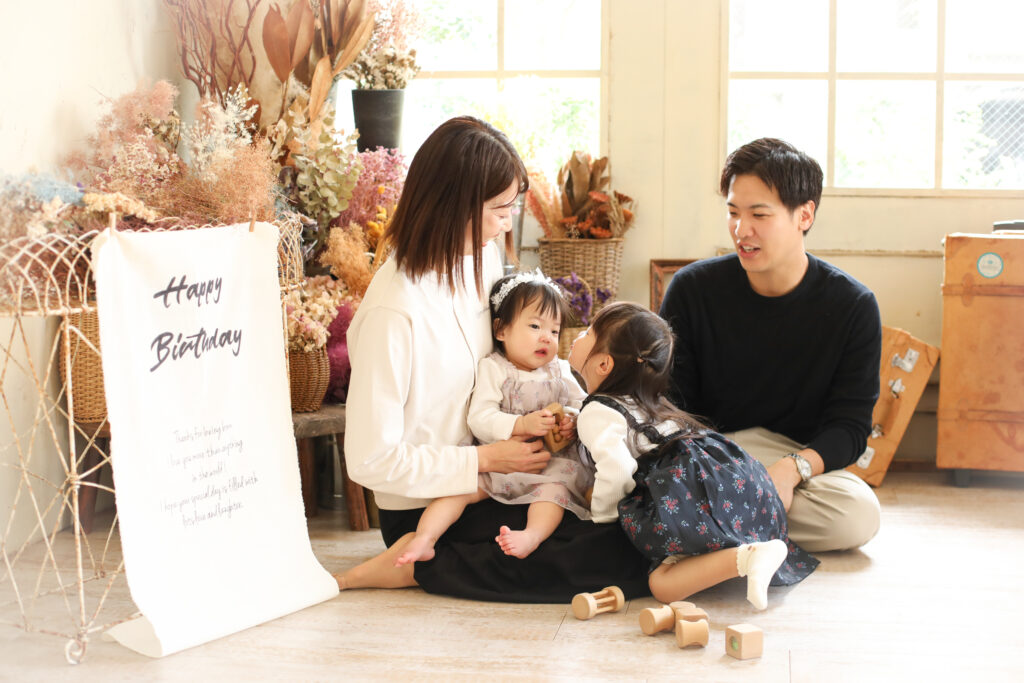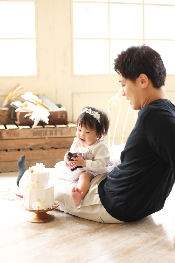 今回は先日1歳バースデーで来てくれた「パパママの膝の上からなかなか降りられないお子様」のお写真をご紹介します。