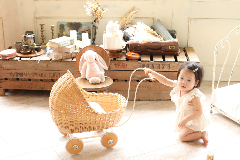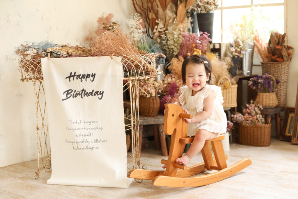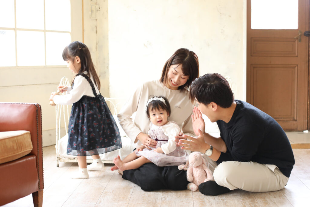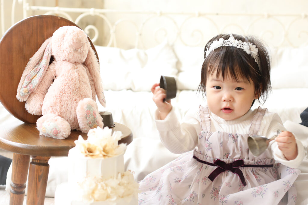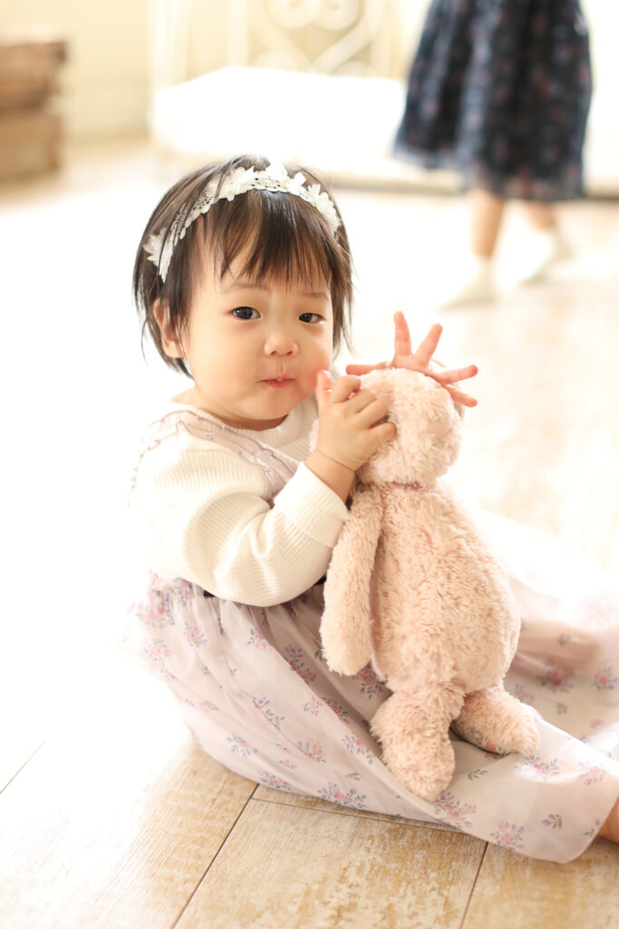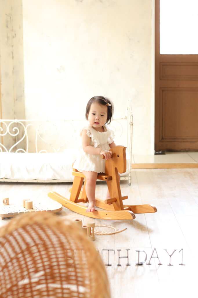 今回は先日1歳バースデーで来てくれた「パパママの膝の上からなかなか降りられないお子様」のお写真をご紹介します。