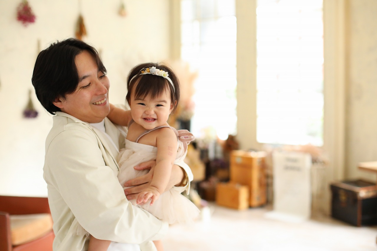 お子様を見つめるパパの笑顔も素敵です。