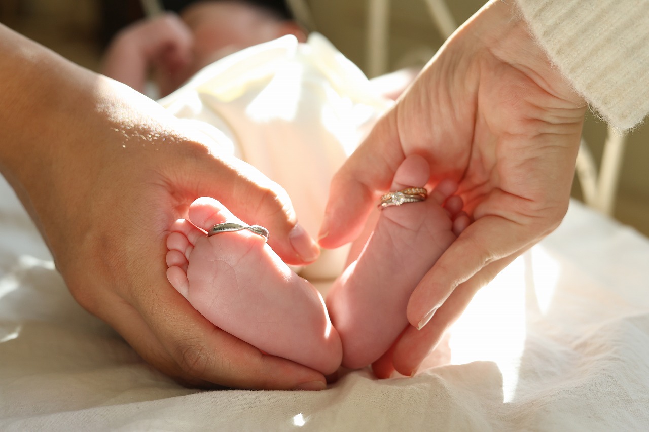 こちらはママのご希望ショット。小さいあんよと指輪、そしてママパパの手でハート♡素敵です