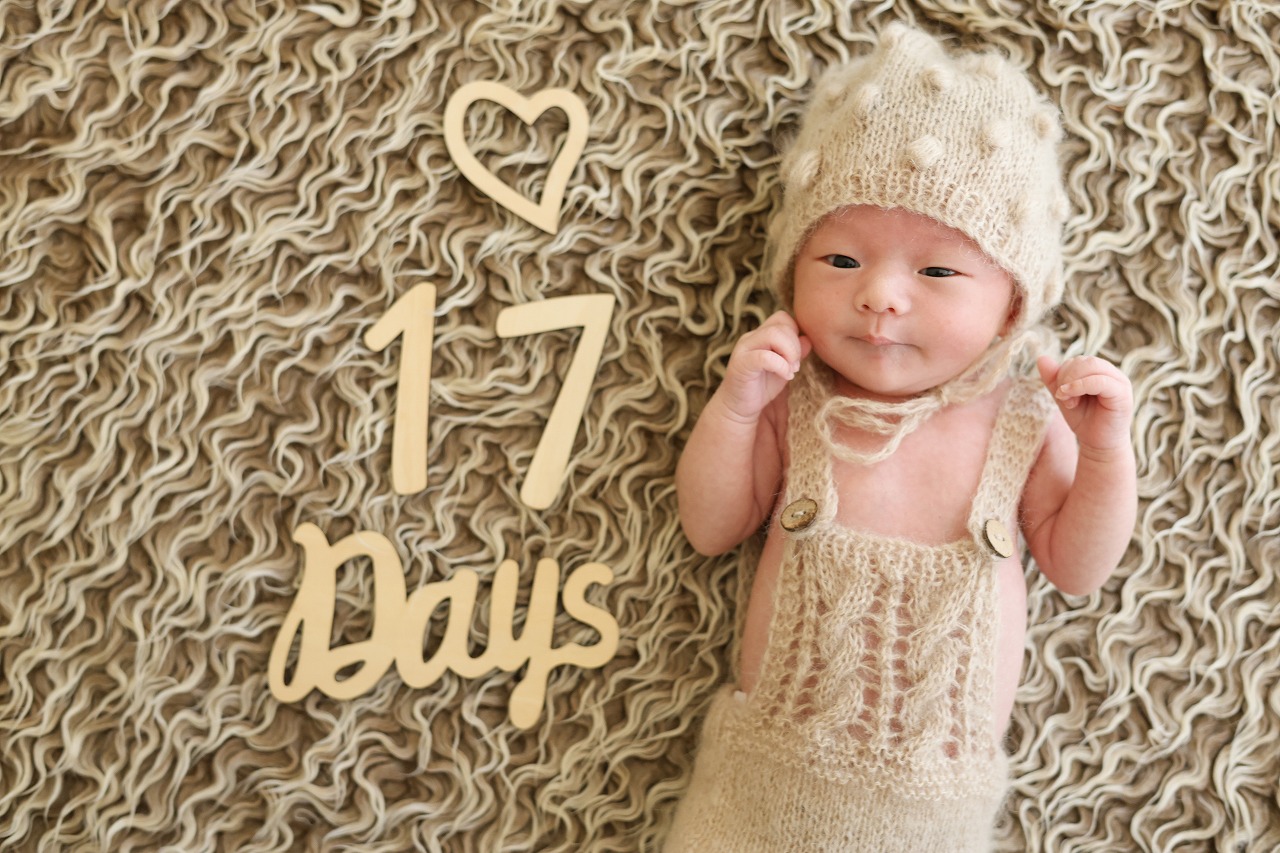 この日は産まれて17日だったので、ちょうどの数字で撮りました!