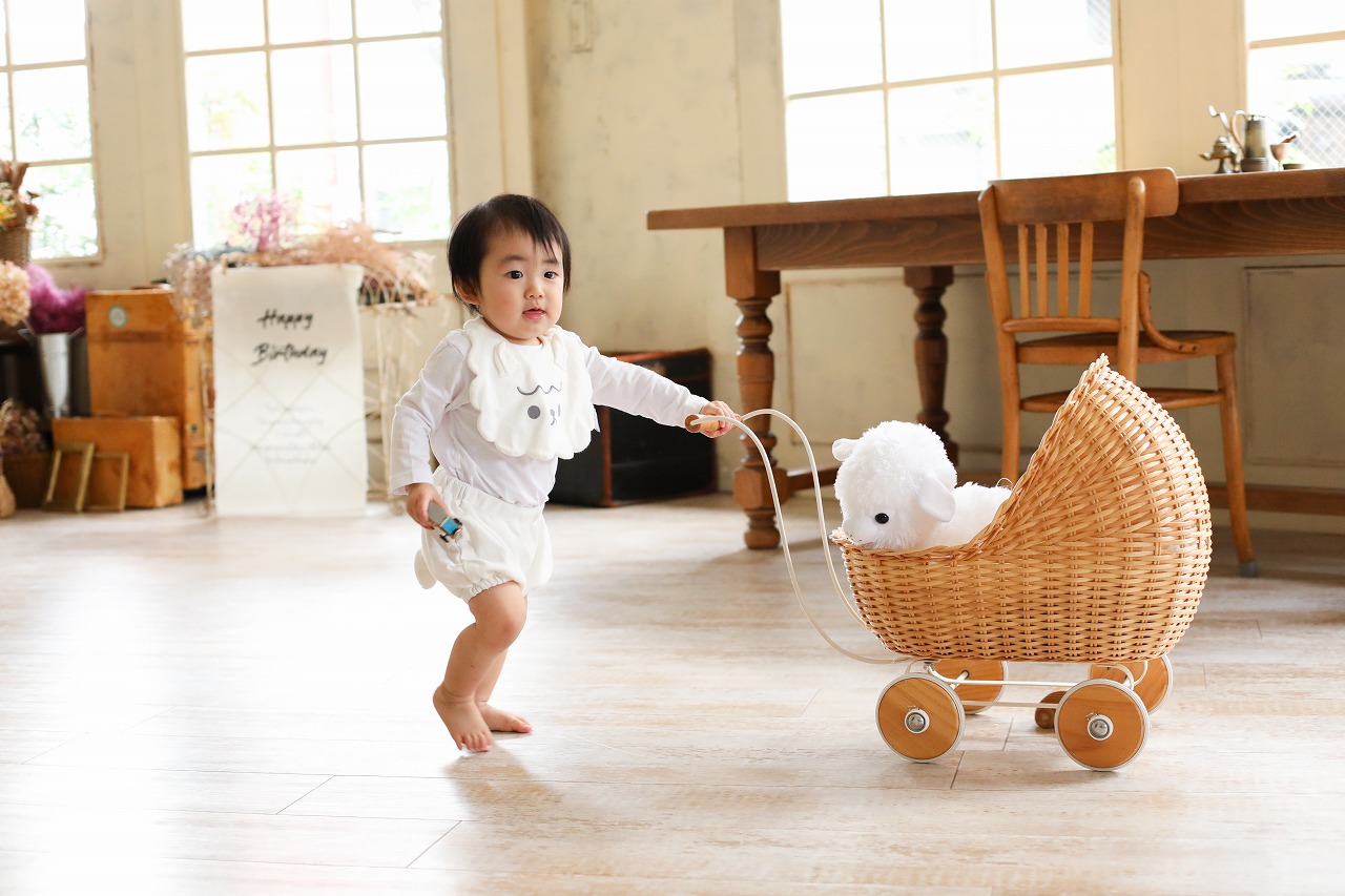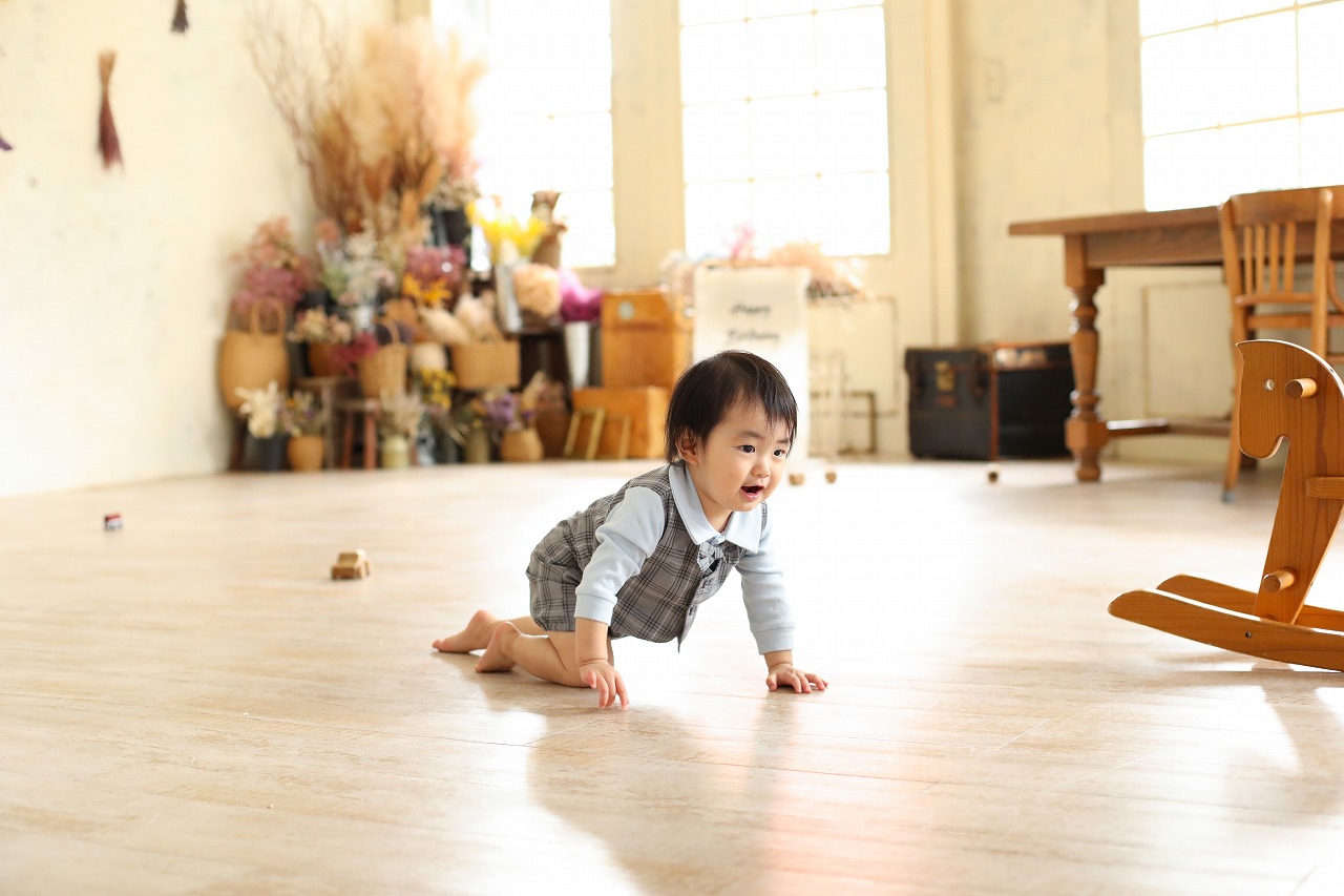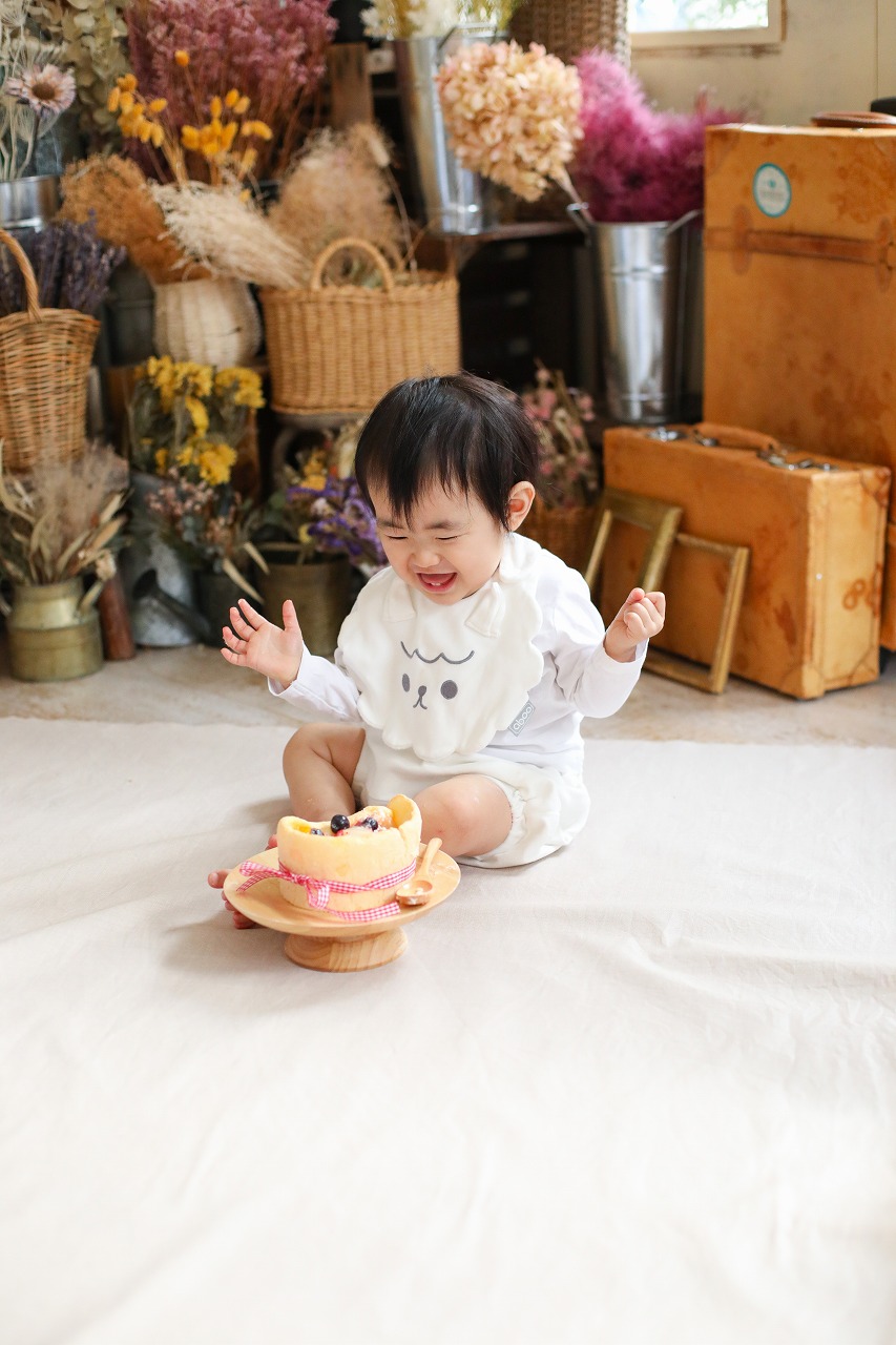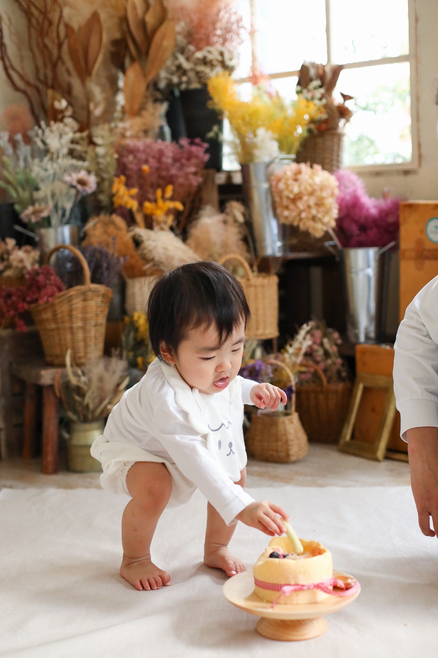 食欲よりも、お散歩♪元気いっぱいな1才バースデーフォトでした。