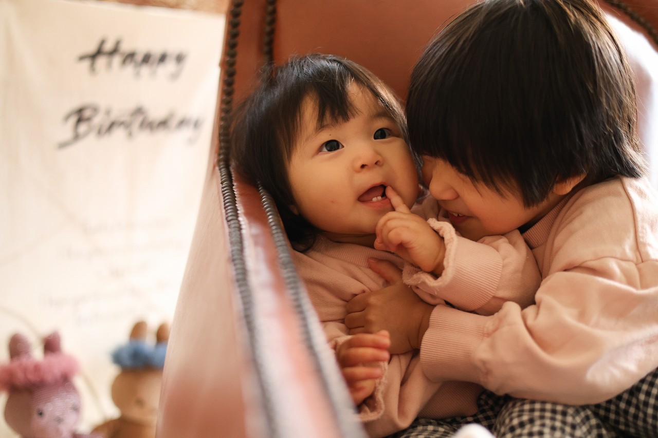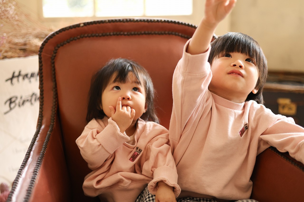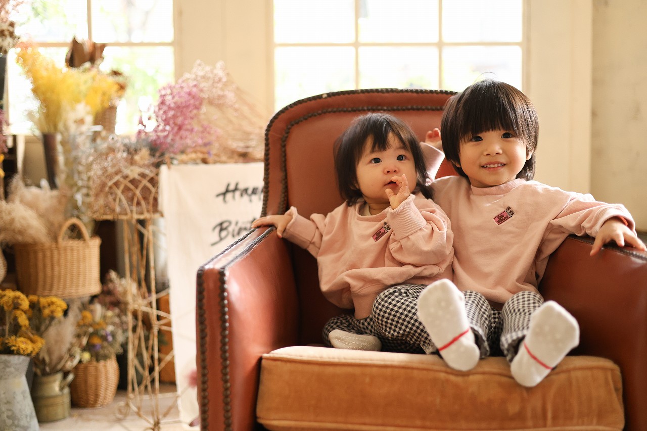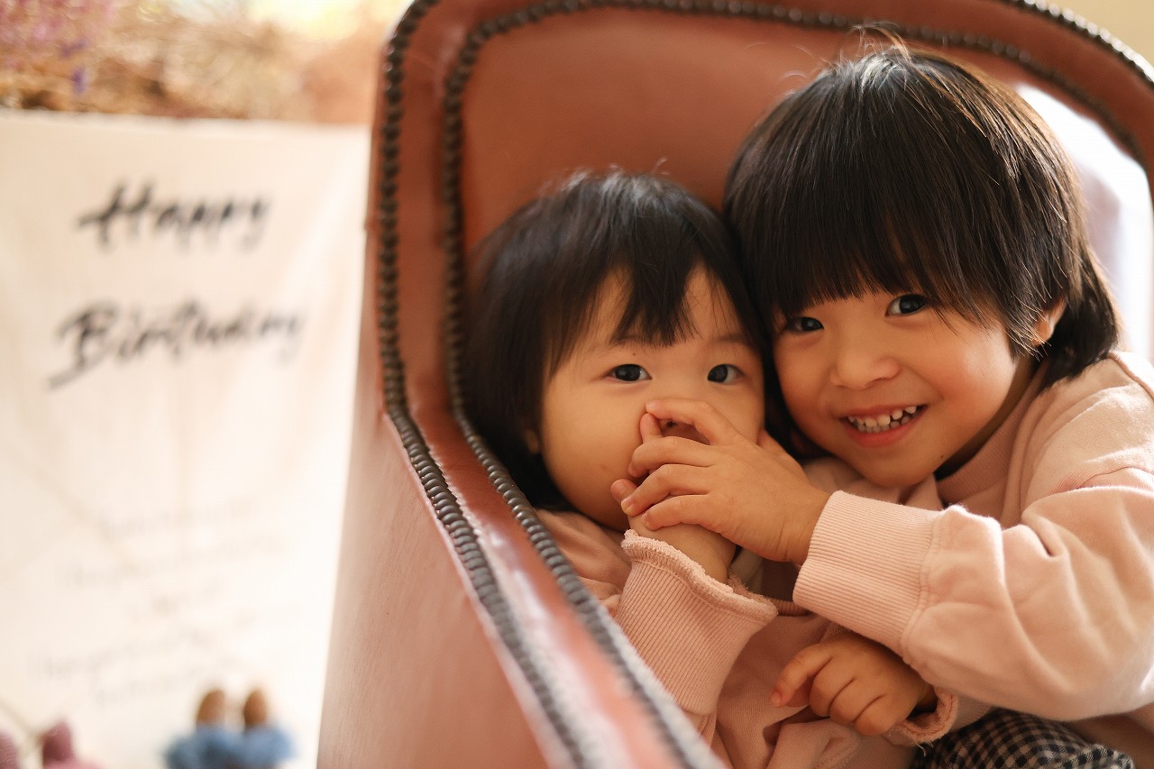 初日から2才の双子ちゃんのバースデーフォトや、