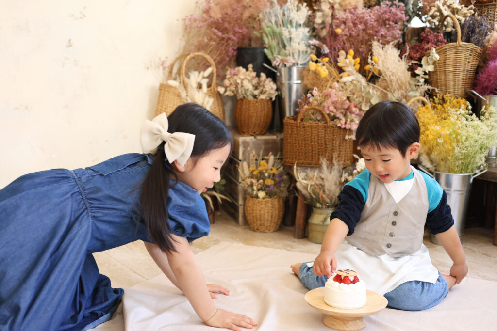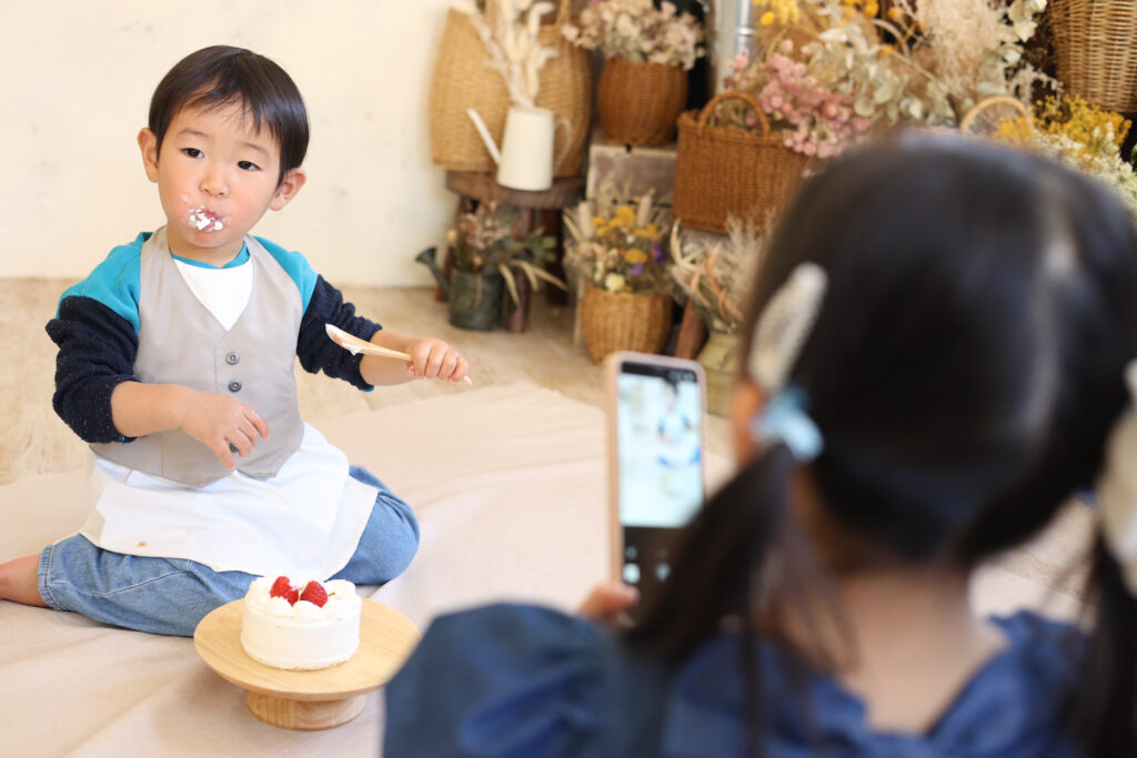 studio clampのバースデーフォトの代名詞といえば「ケーキスマッシュ」
