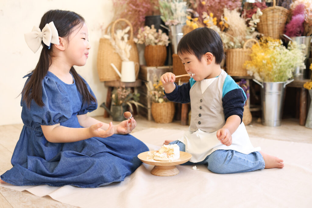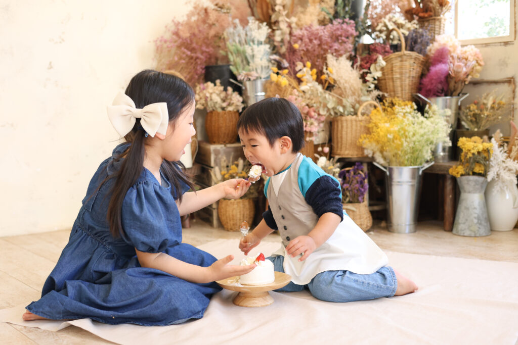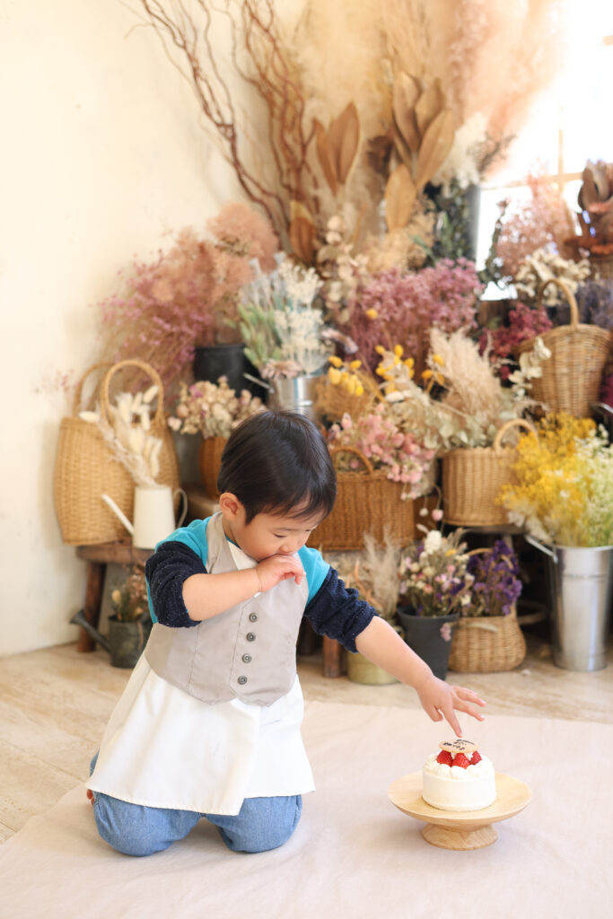 1才バースデーでされる方が多いです。手づかみでお顔にクリームをたっぷりつけて一生懸命食べている姿がとっても可愛い♡
