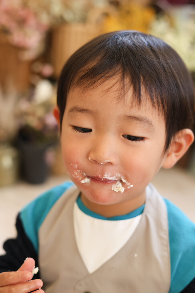 2才さんのケーキスマッシュは1才とはまた違う可愛さがありました。「食べる」ってカワイイ♡
