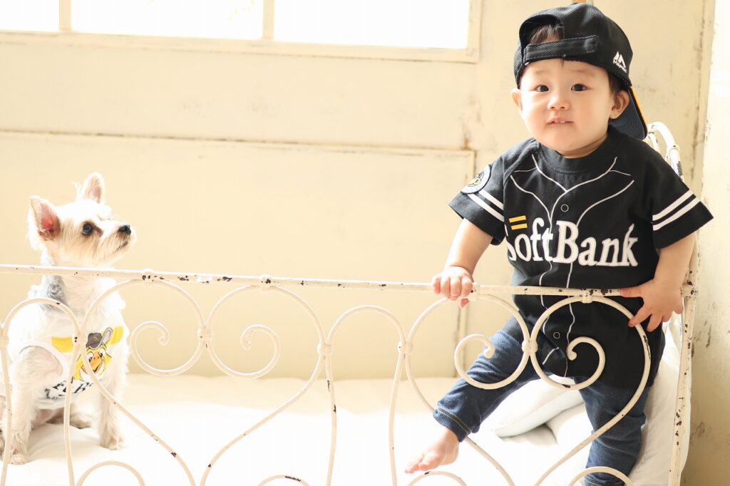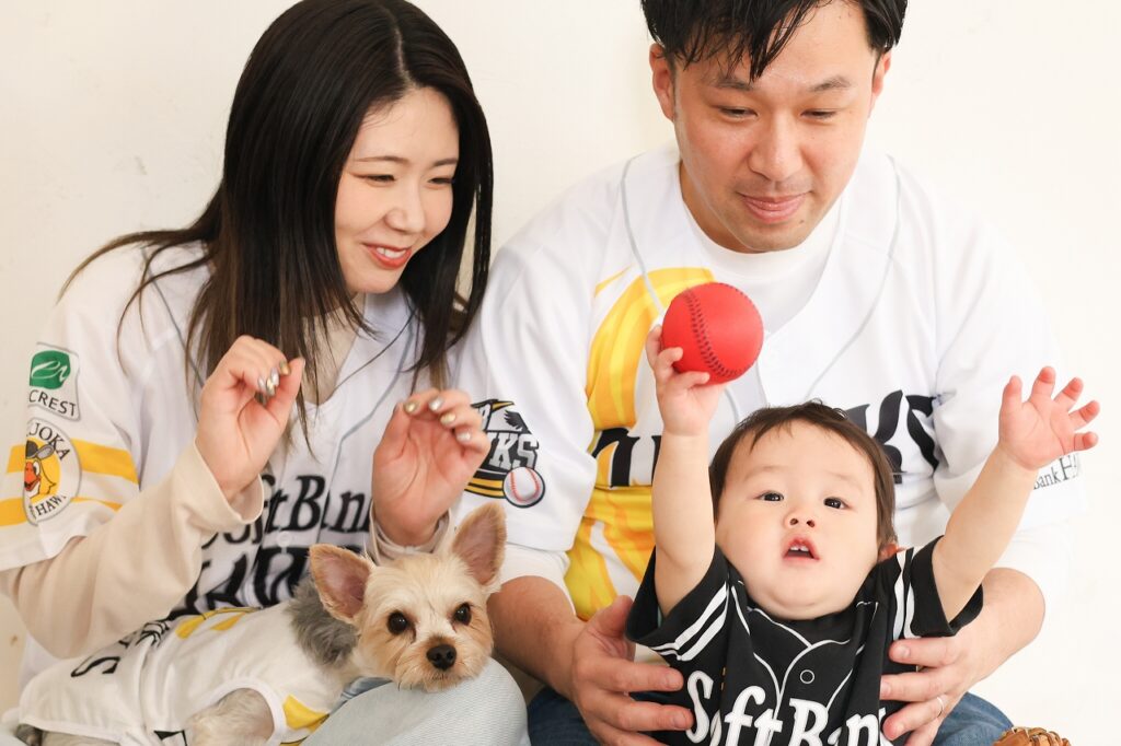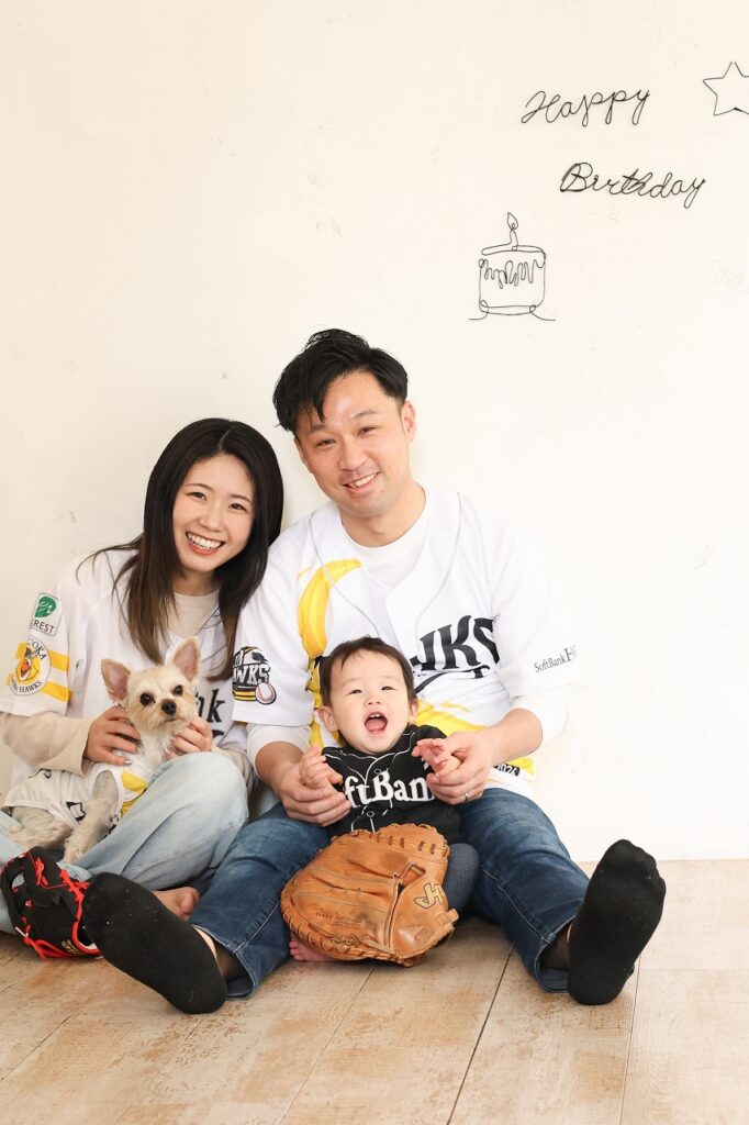 パパママにワンちゃんもユニフォームオソロで最高だね!