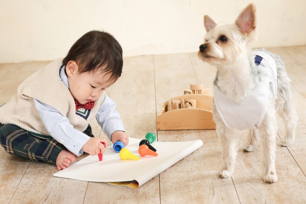 お絵描き道具も持ってきてくれました、上手に書き書き出来たね