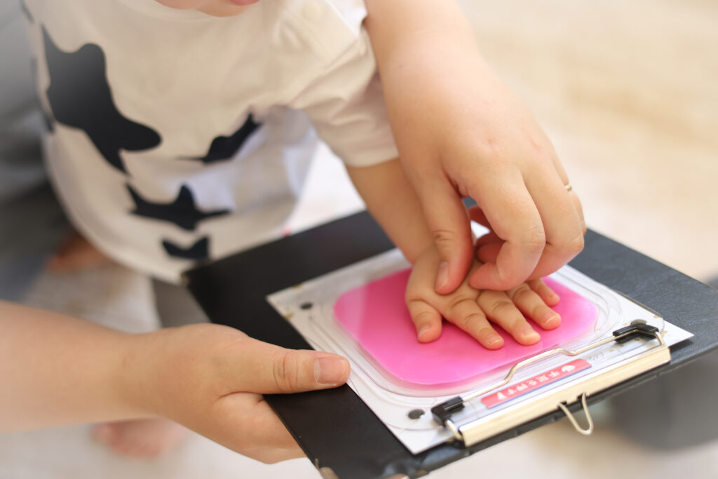 ボクもちょいといやいやだったので、ぐっと手形をとったあとにすーっと伸びちゃったので再度挑戦。