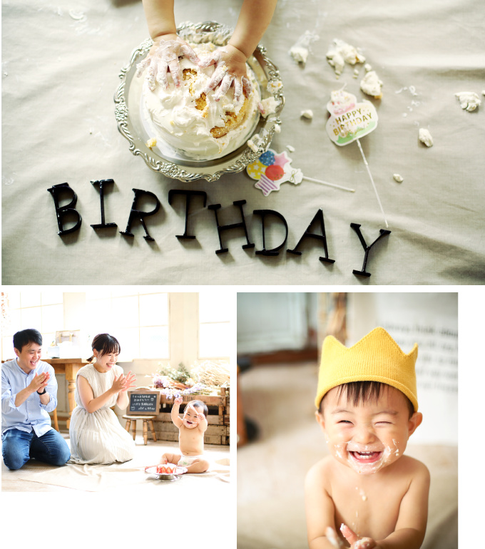 食べ物に興味を持ち始めたお子様に、ケーキを見て、触って、食べてもらい、その成長をお祝いします。